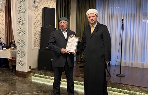 От имени главного муфтия шейха Равиля Гайнутдинадоктор Дамир Мухетдинов наградил благодарственным письмом председателя ингушской общины Аюпа Мальгасова.